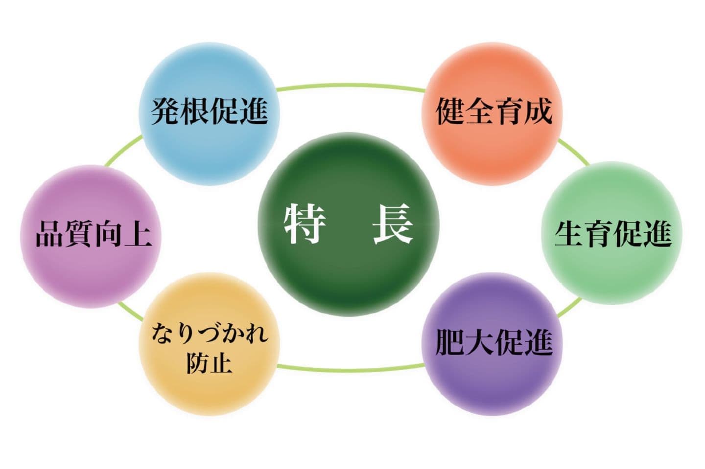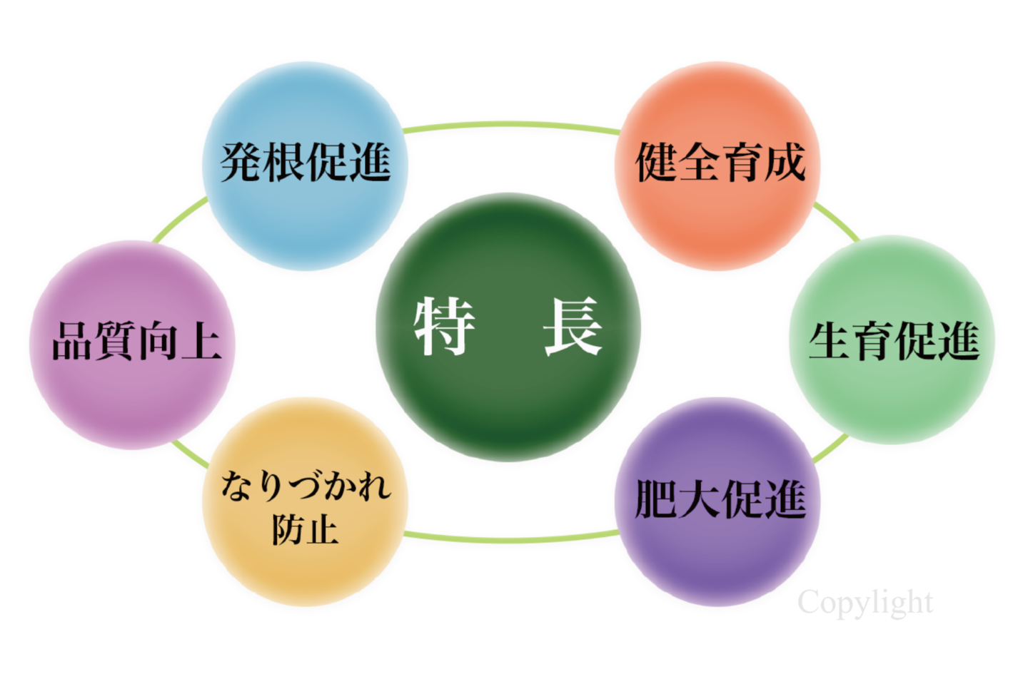 光合成機能と栄養物質の転流を向上して葉の老化防止や病気、低温、乾燥などの悪環境に対する抵抗性を向上します。